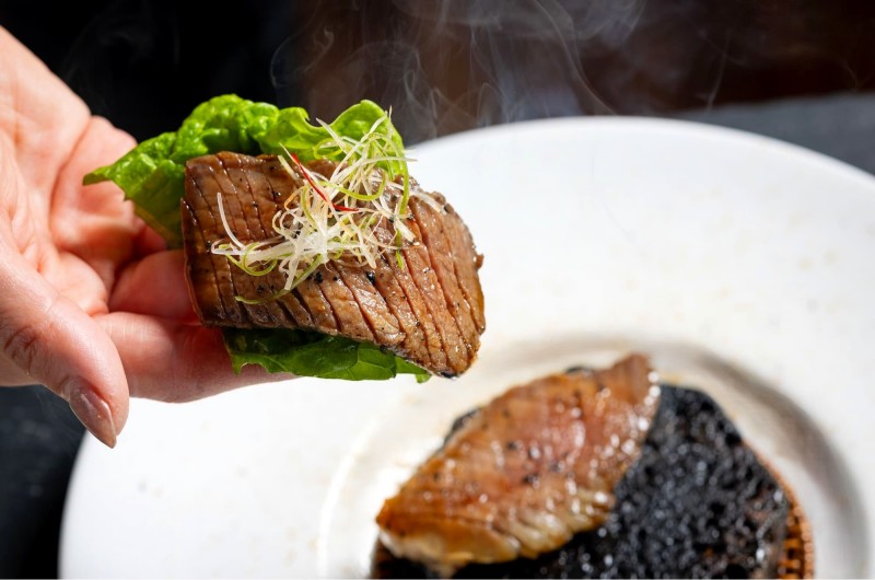 A5ランクオリーブ牛を酒盗のソースで石焼にしました