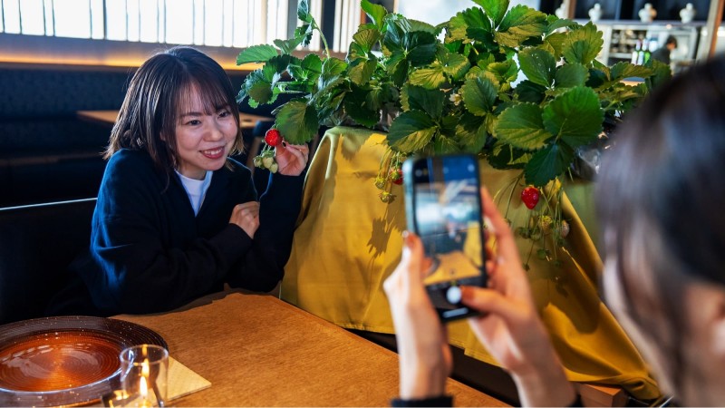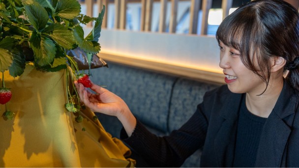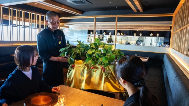 2026年1月上旬からは、 お席で1粒いちごを摘み取っていただく“いちご狩り体験”を アミューズとしてご提供。 摘みたての瑞々しさと甘みをその瞬間に味わう贅沢は、 ここでしか出会えない食の記憶となります。