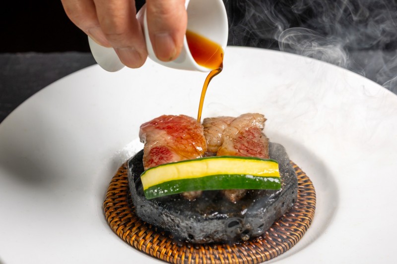 A5ランクのオリーブ牛を、石焼でご用意しました