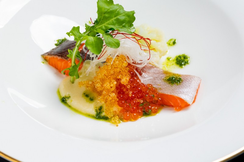 魚料理は出荷期間40日のオリーブサーモン