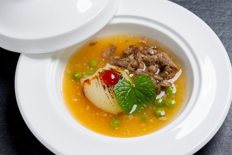 新玉ねぎとオリーブ牛のコンソメ仕立て