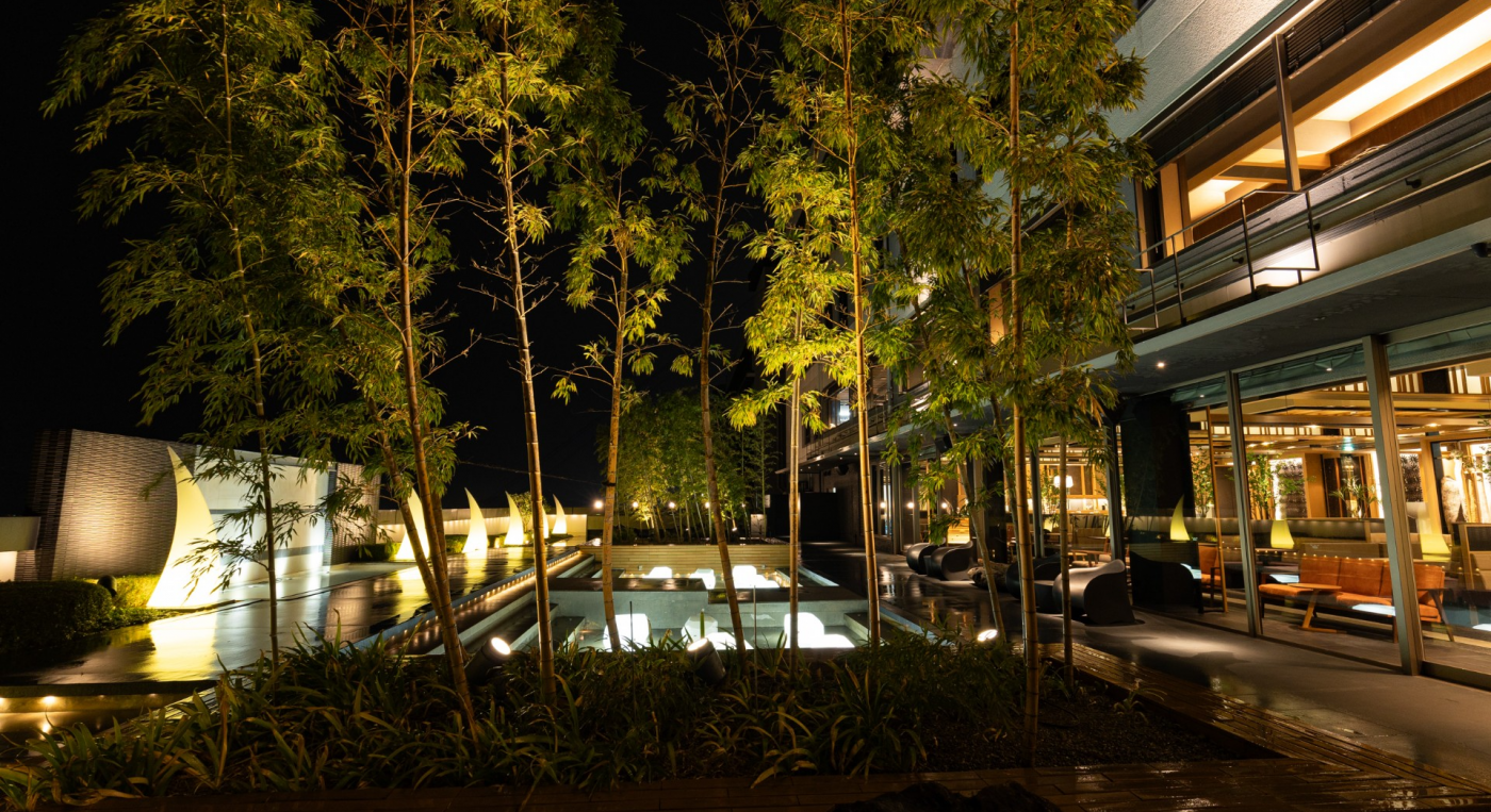 地上50mに位置するガーデンには、優しい風が通り抜け、2つの竹林のざわめきが、どこか懐かしいメロディーを奏でます。また、大パノラマに観る夕景ではスカイブルーからオレンジ、そしてパープルへ・・・数秒ごとに変わりゆくマジックアワーがお愉しみいただけます。